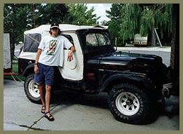 Check this dude out. He's so proud of his Jeep. And check out those sandals, hell yeah. This guy is one not to be fucked with. And what kind of shirt is that anyway.